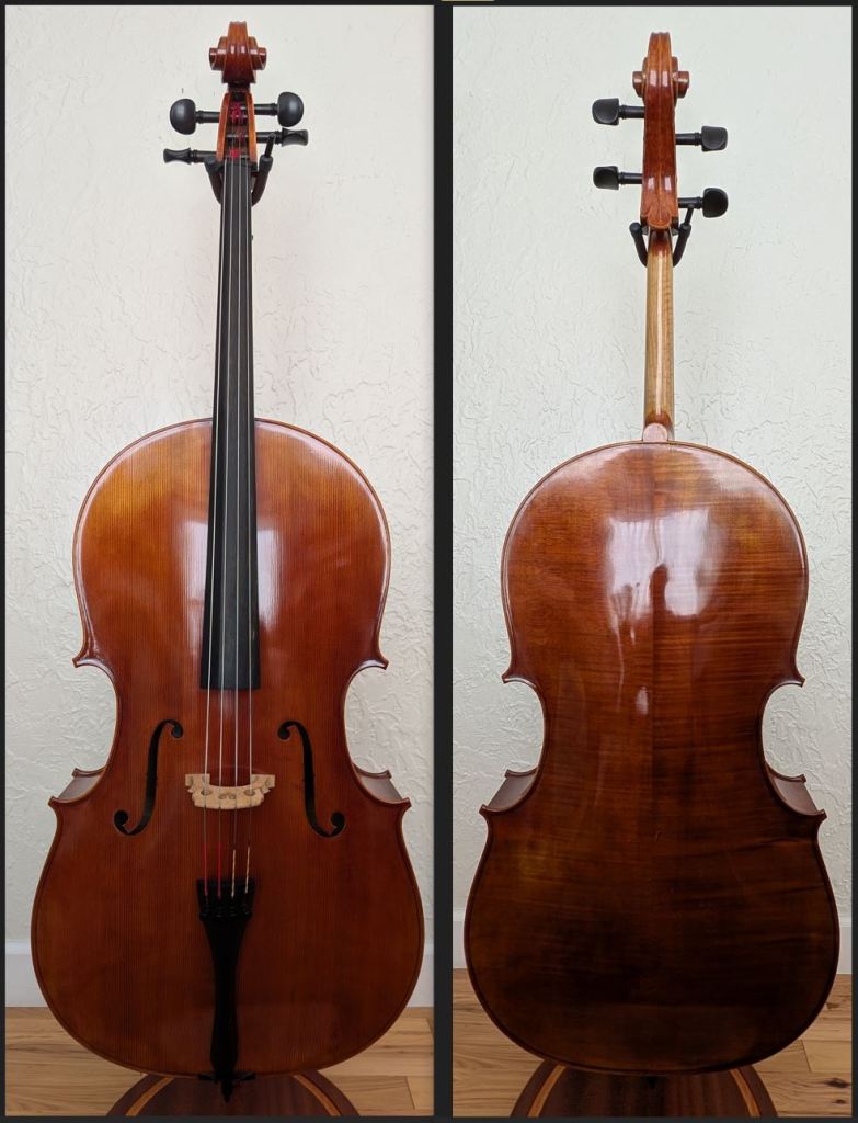 A beautiful Montagnana copy made in 2023 by the highly respected Xueping Hu workshop in Beijing, China, this cello has a powerful, even tone across all registers. Xueping Hu lists this model as an “advanced” level cello. Having played this one for for several days, I concur! Visit the Snow website for more about this cello.